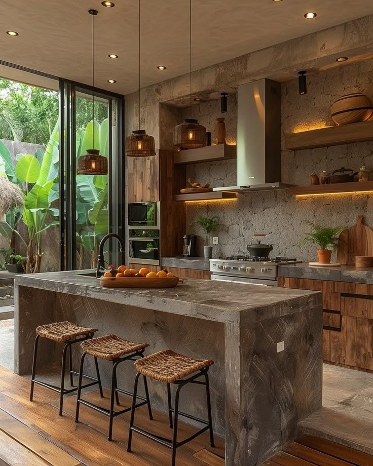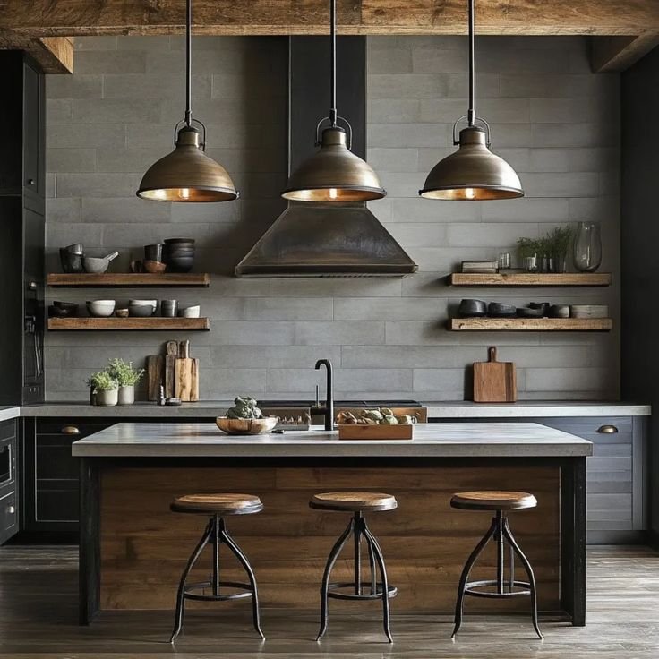 The goal isn’t to lean fully industrial. It’s to combine durable materials with comfort so the house still feels livable.