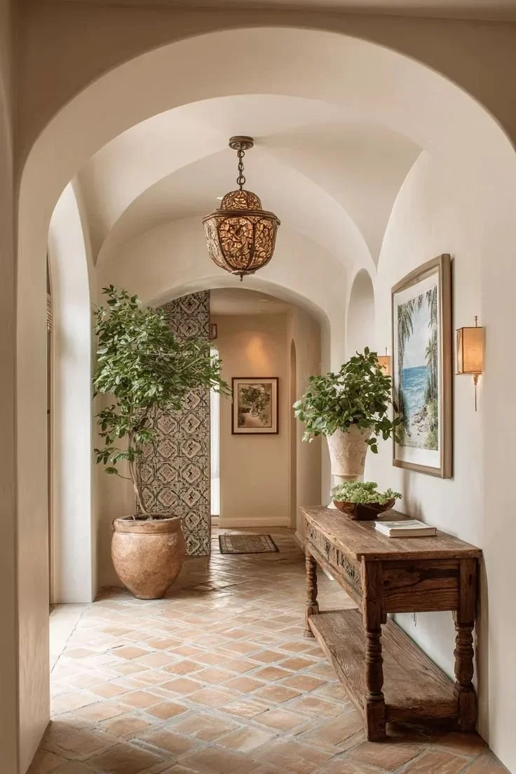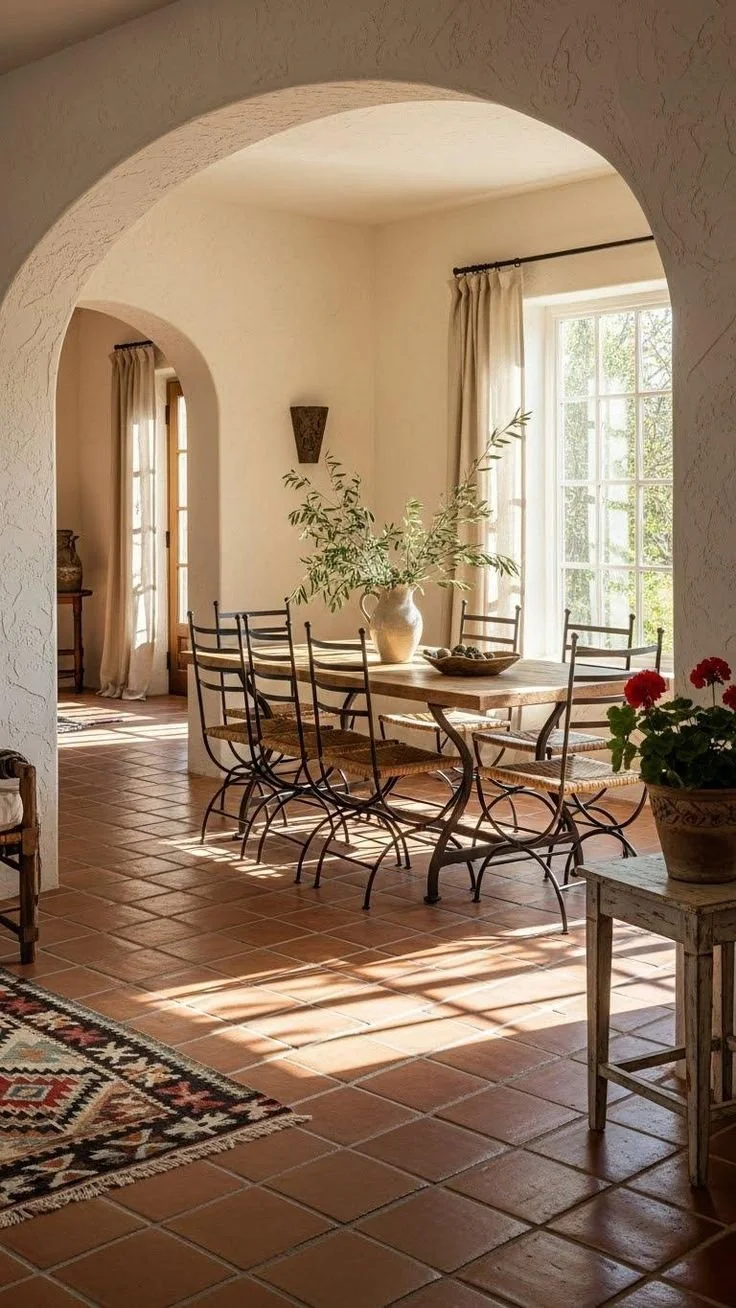 Terracotta tiles make more sense in Southern California than people expect. They handle heat well, don’t show wear too quickly, and actually feel comfortable underfoot even in the middle of the day. The slightly uneven finish also softens the way light hits the floor, so it never feels too sharp or reflective.