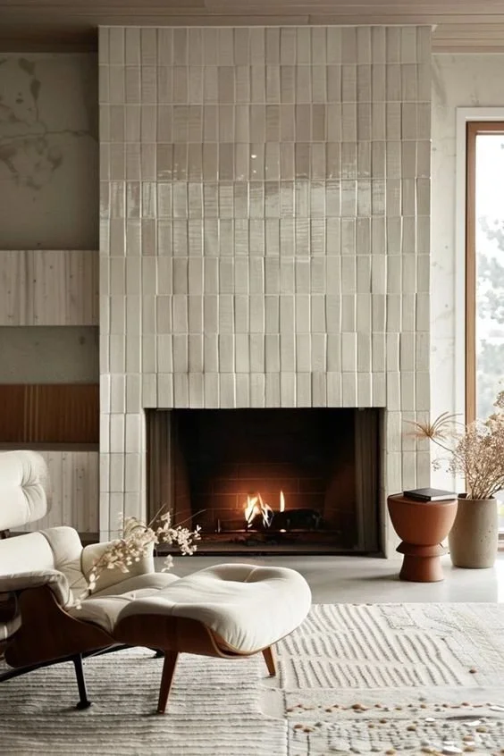 Even a small tiled section, like a fireplace surround, can shift the feel of an entire room.