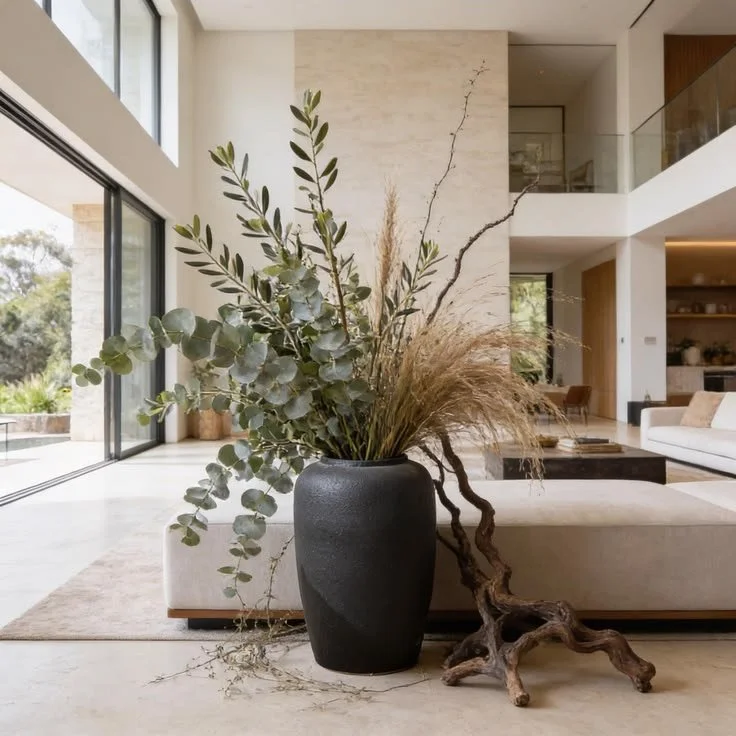 A single ceramic vase can carry a surprising amount of presence, especially in living rooms or entryways. Designers often choose pieces with irregular shapes, matte finishes, or visible hand-thrown lines.
