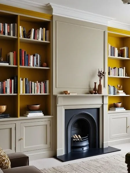 Built-ins often blend into the wall, which isn’t always the intention. A contrasting paint colour inside shelving can bring attention to the structure without turning the whole wall into a feature.