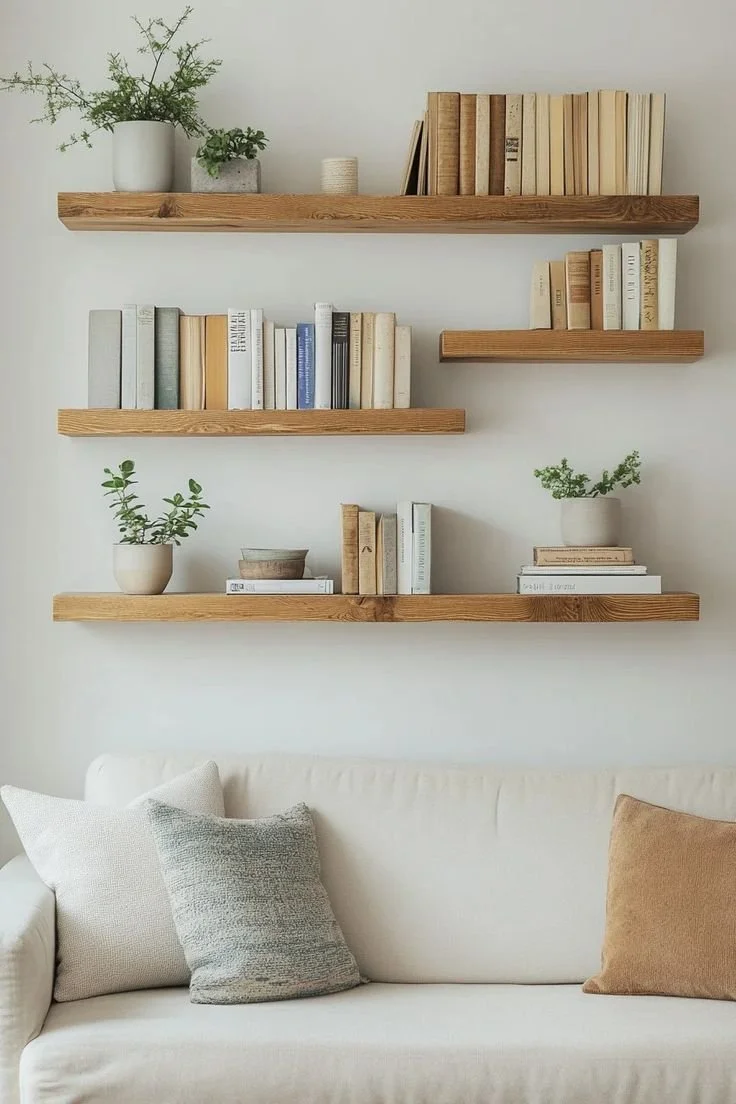 Sometimes a room doesn’t need new furniture or a full redesign. A few thoughtful adjustments can change how the space feels. Floating shelves are a good example. When books, small plants, and simple objects are arranged with a bit of intention, a blank wall starts to feel more finished.