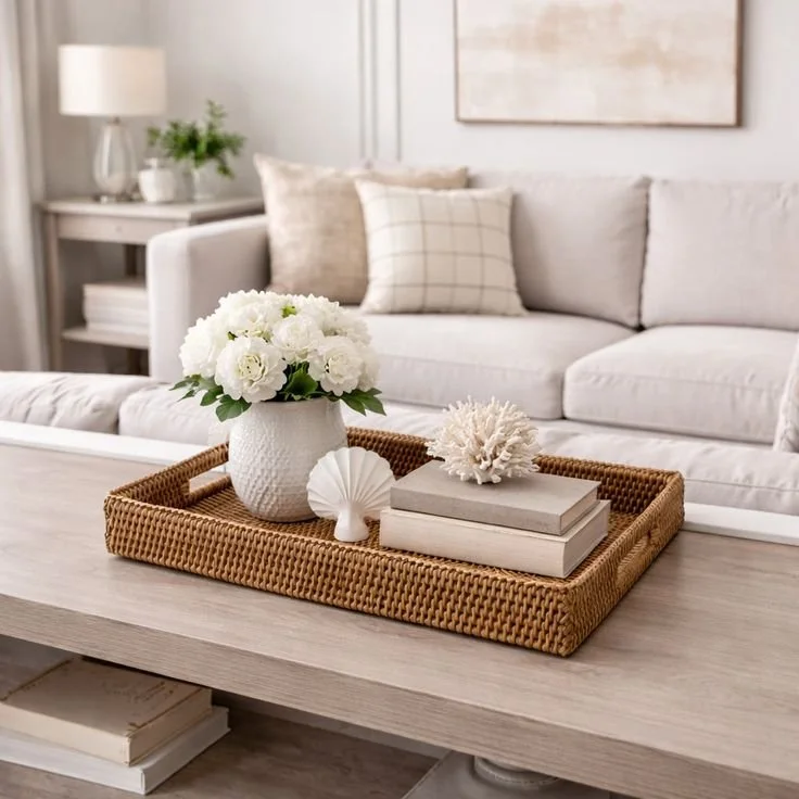 Decor often works best when items are styled together rather than added one at a time. A tray on the coffee table, a stack of books, and a simple vase with flowers can turn an empty surface into something that feels finished. The pieces themselves aren’t complicated, but the way they’re grouped makes the difference.