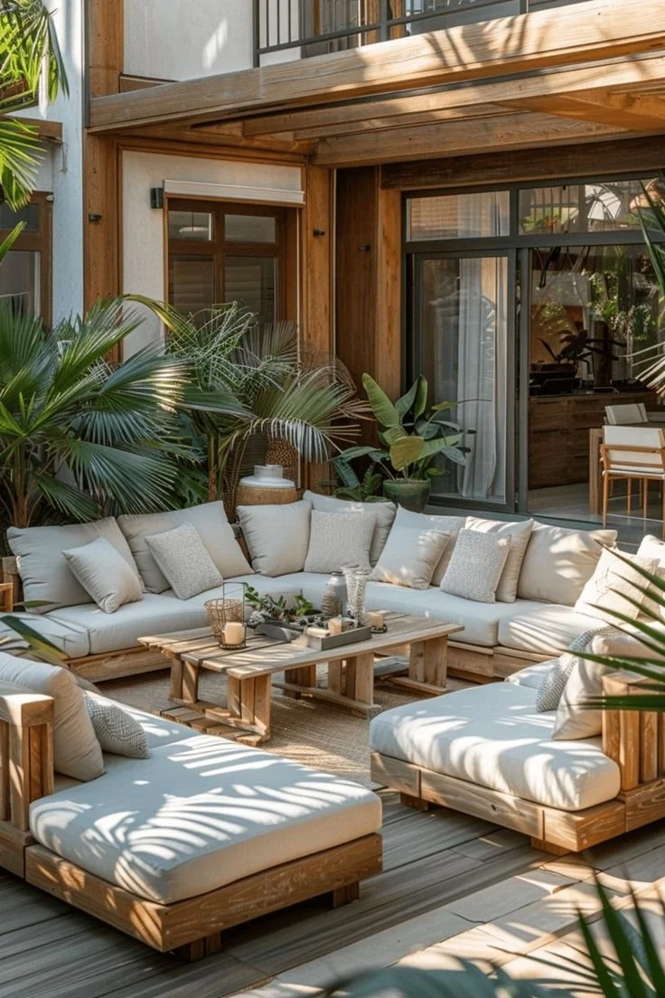 This layout is common in homes designed with indoor-outdoor luxury living design in mind, where the patio functions as an extension of the house. Designers working with warm modern interiors California often approach outdoor seating the same way they approach a living room—grouping furniture around a central table so conversations can happen naturally instead of across a long dining setup.