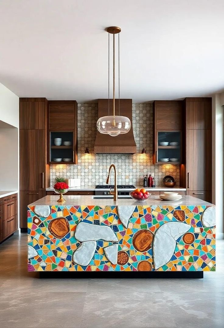 Instead of adding color on top, it’s already built into the surface. Cabinets, wood elements, and even hardware can stay quieter because the variation is already there.
