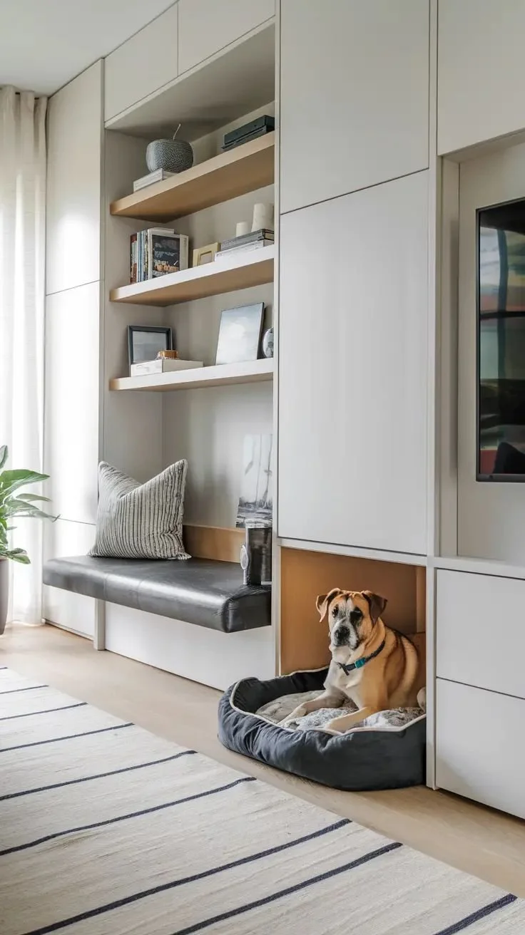 This is where thoughtful planning shows. Hidden feeding stations, storage for leashes, built-in nooks for beds.
