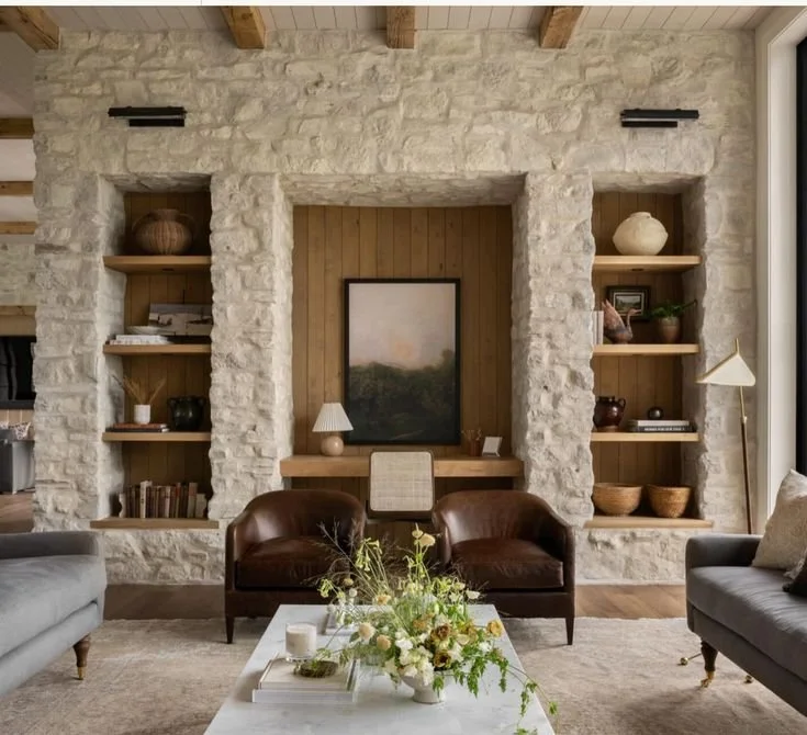 Stone inside the house can go wrong fast. Too rustic and it feels themed. Too polished and it starts looking like a hotel lobby.
