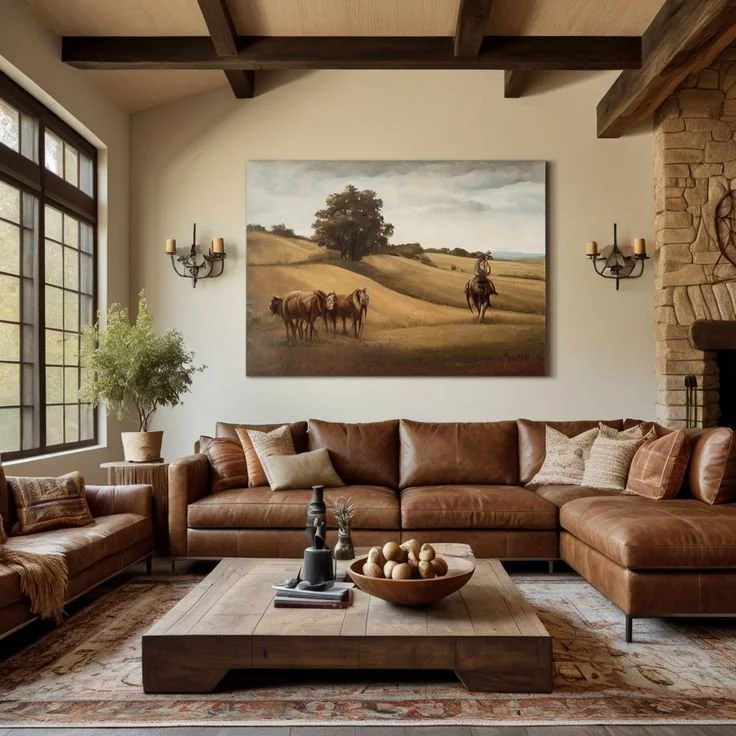 Leather sofas are often chosen because they handle everyday use well and develop character over time. A large leather sectional like this can anchor a living room while still feeling comfortable and practical.