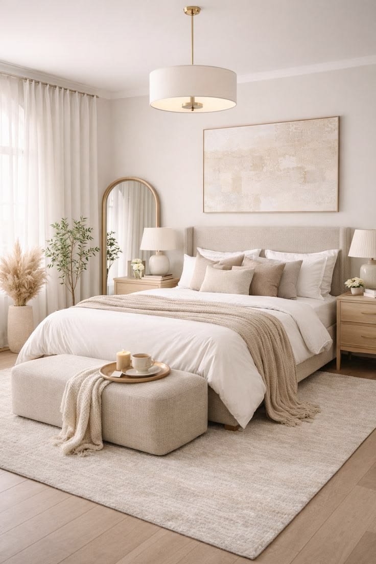 Cotton or linen still works best, especially in warmer climates, but it doesn’t have to feel minimal. In setups like this, the extra layers add comfort without making the room feel heavy. This is where quiet luxury interior design tends to show up—nothing feels excessive, but everything is considered once you actually use it.