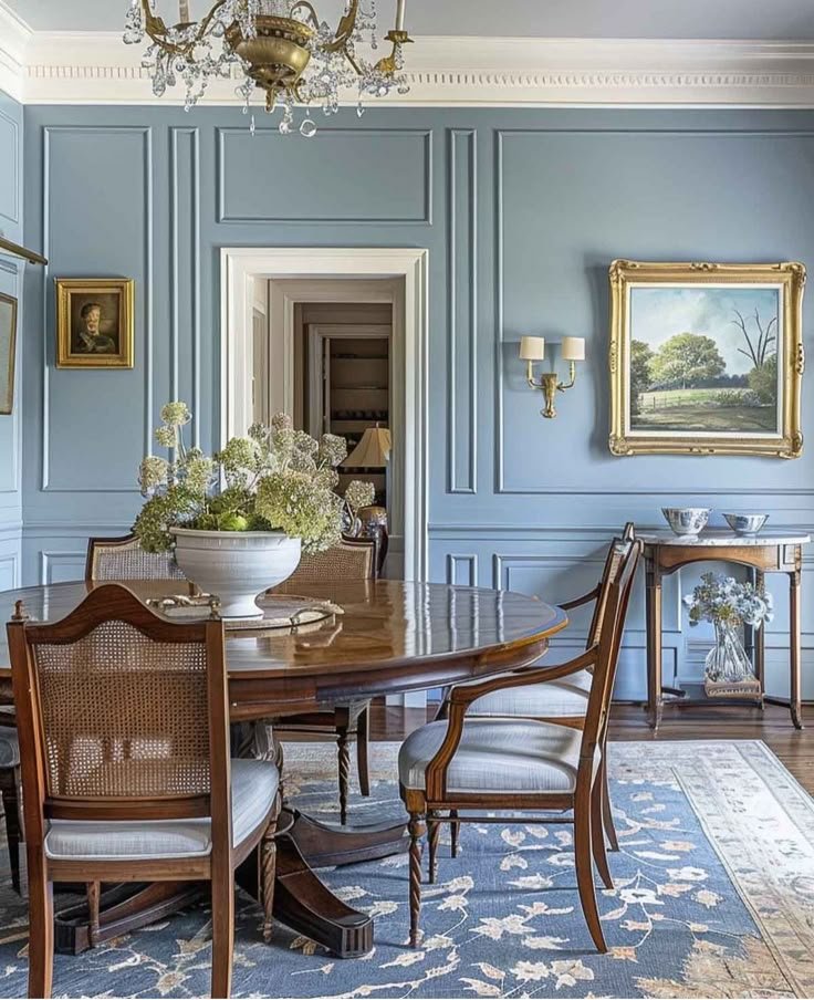 Formal dining rooms still work well with traditional box moulding, but it’s usually filtered through California contemporary interior design rather than strict period detailing. The profiles are slimmer. Chair rails tend to sit slightly higher. In some homes, the panel layout lines up with window frames or door casings so the wall feels considered instead of decorative.